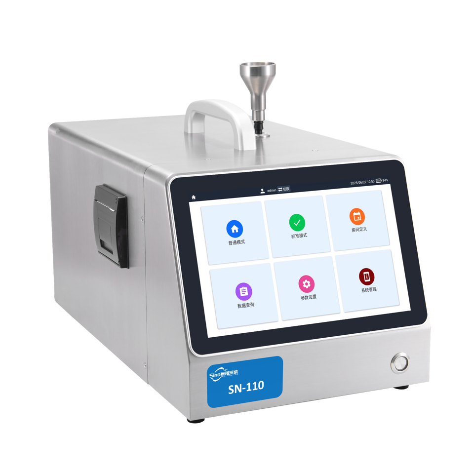 SN-110型0.1μm尘埃粒子计数器2.83L洁净室检测是一台基于全固体激光器的高精度0.1μm尘埃粒子计数器,采样流量为2.83L/min(1CFM),利用光散射原理测量空气中0.1、0.15、0.2、0.25、0.3、0.5、0.7、1.0、5.0μm悬浮微粒的大小和数量的便携式精密仪器,可实现最高8通道粒径的粒子计数,自动进行多样化的数据统计。内置HEPA过滤器,可过滤排出的空气。仪器软件系统针对洁净室检测定制开发,可满足多样化的检测需求。适用于半导体集成电路厂房、光学实验室、洁净车间、生物实验室、药厂、检验检测机构、安全柜生产厂家等洁净室洁净度检测,以及空气过滤器及滤材性能的检测。