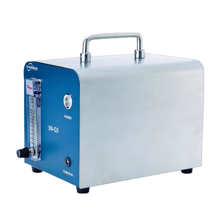 SN-Q3型气溶胶发生器(便携式/冷发)采用压缩空气式雾化器与不锈钢喷嘴,产生多分散气溶胶。内置压缩机提供所需空气,并配备一个可调流量计,允许用户自行设定流量改变粒子浓度。